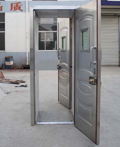 根據(jù) 銀發(fā)[1998]588號(hào) 人民銀行公安部《金融機(jī)構(gòu)營(yíng)業(yè)場(chǎng)所、金庫(kù)安全防護(hù)暫行規(guī)定》“金融機(jī)構(gòu)的營(yíng)業(yè)場(chǎng)所、柜臺(tái)通勤應(yīng)安裝具有聯(lián)動(dòng)互鎖裝置的兩道門!钡囊(guī)定, 為滿足金融系統(tǒng)的防范要求,我公司自1999年初開(kāi)始研制開(kāi)發(fā)了系列防尾隨聯(lián)動(dòng)互鎖安全門,該系列防尾隨聯(lián)動(dòng)互鎖安全門分別應(yīng)用于銀行的營(yíng)業(yè)間、儲(chǔ)蓄所、證券交易所等部門。我公司生產(chǎn)的防尾隨聯(lián)動(dòng)門嚴(yán)格按照GA576-2005《防尾隨聯(lián)動(dòng)互鎖安全門通用技術(shù)條件》生產(chǎn),并通過(guò)公安部安全與警用電子產(chǎn)品質(zhì)量檢測(cè)中心檢測(cè)。防尾隨聯(lián)動(dòng)互鎖安全門有:帶防彈玻璃窺視窗的鋼質(zhì)外門和內(nèi)門、門框封閉箱體、防盜門專用鉸鏈、聯(lián)動(dòng)門專用控制器、刷卡機(jī)、聯(lián)動(dòng)門專用電動(dòng)鎖、多芯控制電纜等組成。